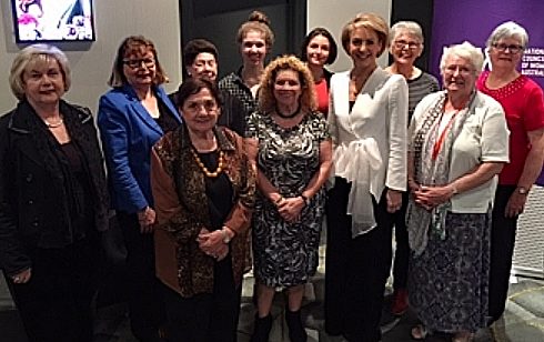 The Triennial conference for the National Council of Women Australia (NCW), held 17 to 19 October 2018 at the QT Hotel in Canberra – The attendance was an excellent representation from the national and state NCW councils. The Patron of NCWA Her Excellency Lady Cosgrove and His Excellency Sir Peter Cosgrove attended the dinner evening where Lady Cosgrove presented the NCWA awards to inaugural winners. Significant focus was placed on all areas of violence, sexual assault, gender inequality, modern slavery, superannuation and homelessness. Photo of Senator Michaelia Cash, with NCW WA representatives Robyn Nolan, Councillor Janet Davidson OAM, Councillor Elizabeth Re and others. 19/10/2018